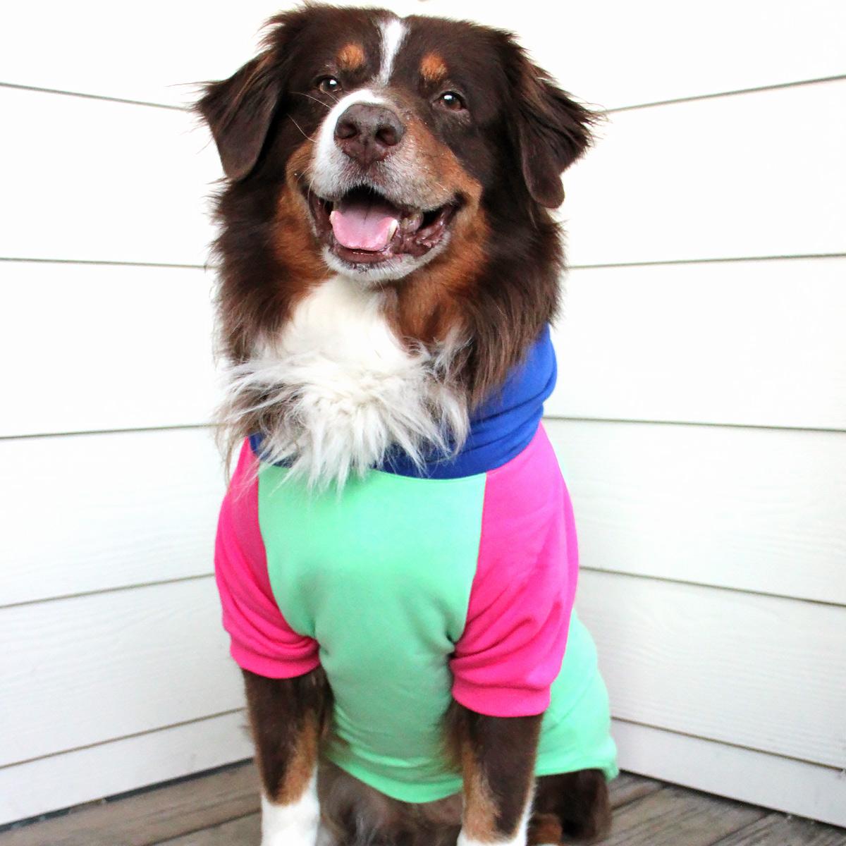 Made from the same soft fabric as our Flex-Fit Dog Hoodies, these bold color-block hoodies are sure to make your pup standout!